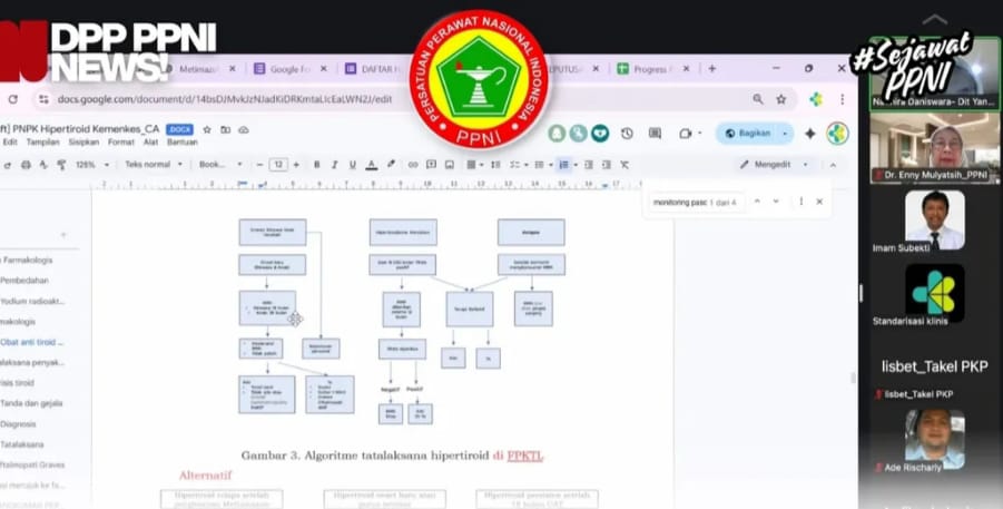 Untuk itulah DPP PPNI turut hadir memenuhi undangan Direktur Pelayanan Klinis Kementerian Kesehatan RI dalam agenda strategis: Rapat Pembahasan Pedoman Nasional Pelayanan Kedokteran (PNPK) Tata Laksana Hipertiroid pada dewasa.