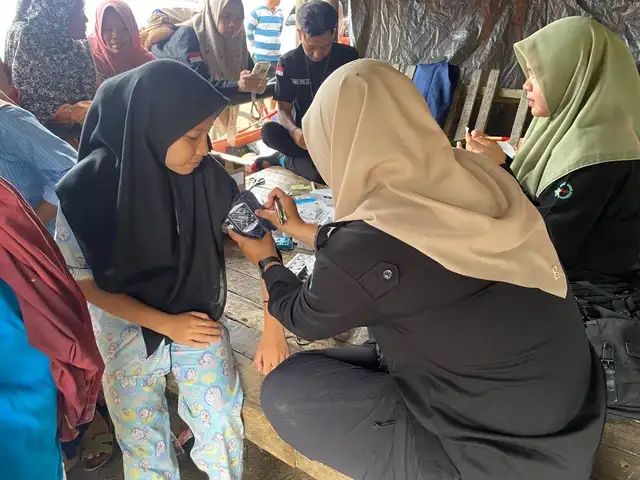 Dari dokumentasi yang dibagikan, terlihat tenaga medis memberikan pertolongan luka ringan hingga pemeriksaan tekanan darah kepada warga.