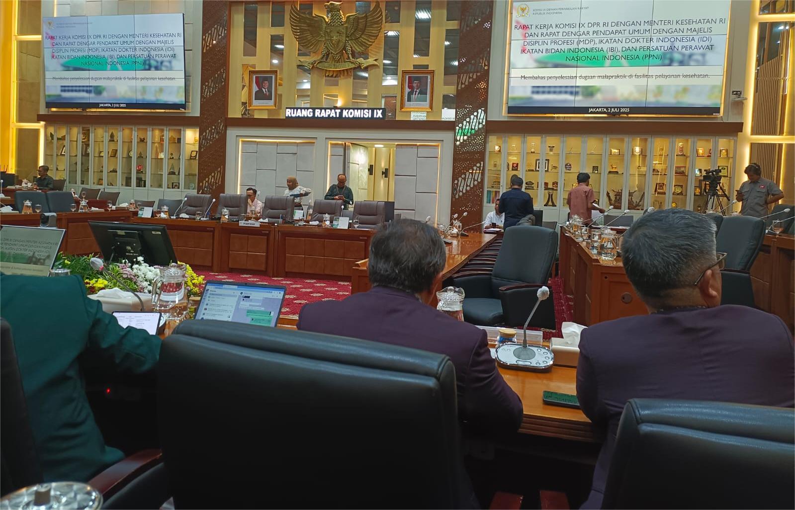 Berikut ini kesimpulan dari Rapat Kerja Komisi IX DPR RI dengan Menkes RI, MDP, IDI, PPNI dan IBI pada Rabu, 2 Juli 2025 adalah :