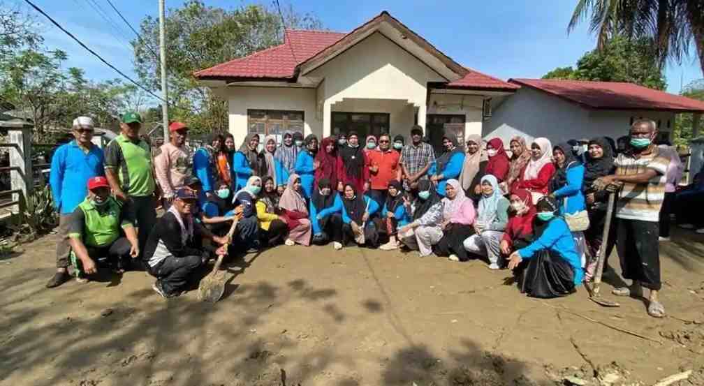 Puluhan tenaga medis Puskesmas Simpang Mamplam, Kabupaten Bireuen, Aceh, Rabu (21/1/2026) turun membantu rekan seprofesi, yaitu membersihkan Polindes di Desa Blang Garang, Samalanga, Bireuen.