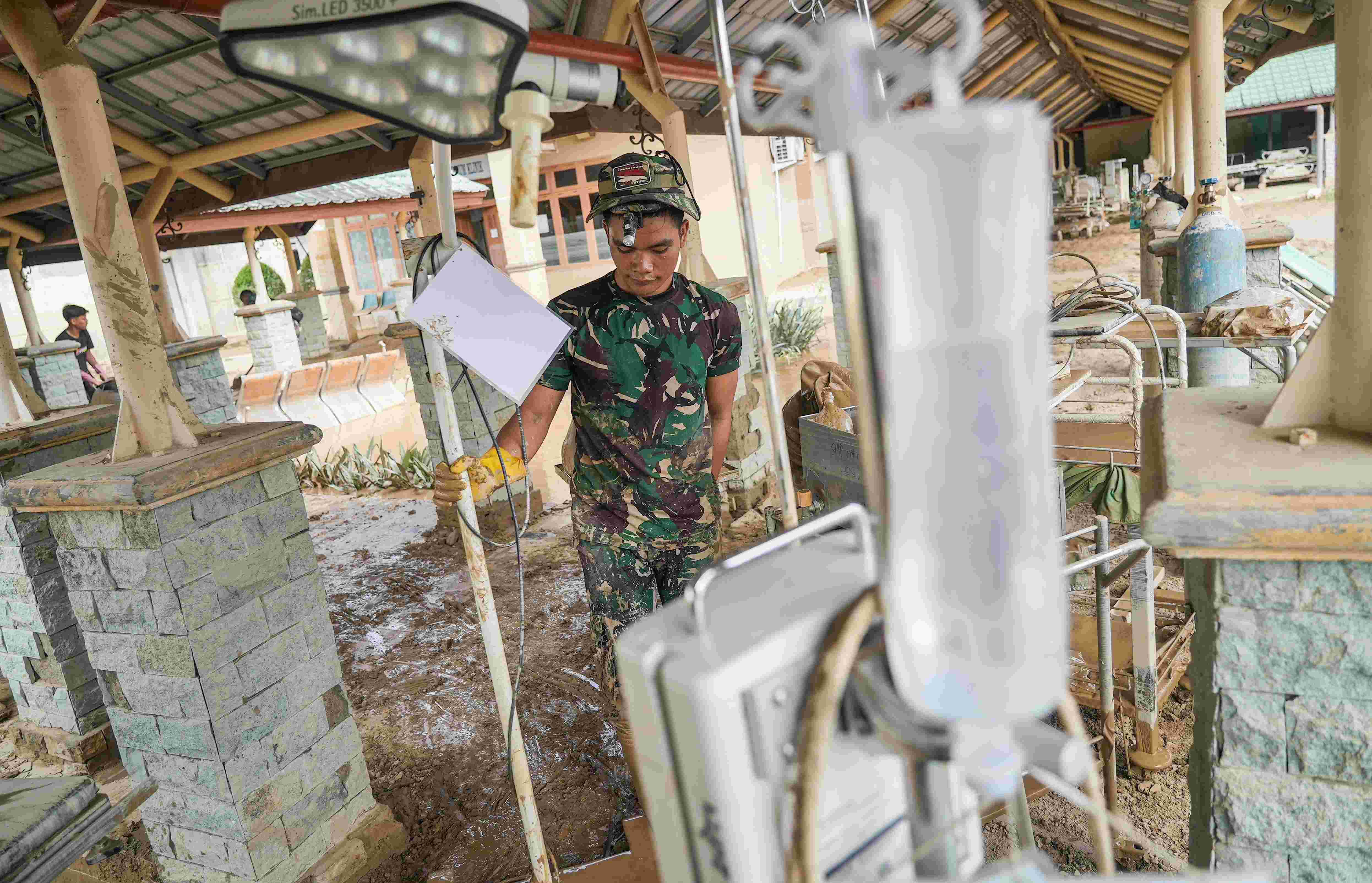 Di RSUD Aceh Tamiang, proses pembersihan berlangsung intensif sejak pagi dengan dukungan TNI dan Dinas Pemadam Kebakaran. Area IGD yang sempat terendam banjir telah ditangani, dilanjutkan ke gedung Hemodialisa dan Poliklinik.