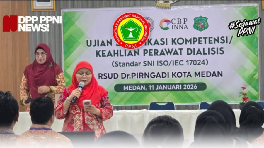 Persatuan Perawat Nasional Indonesia (PPNI) melalui CBP INNA kali ini sukses melaksanakan Ujian Sertifikasi Kompetensi/Keahlian Perawat Dialisis Tingkat Dasar di RS Pringadi, Medan, Sumatera Utara, Minggu (11/1/2026).