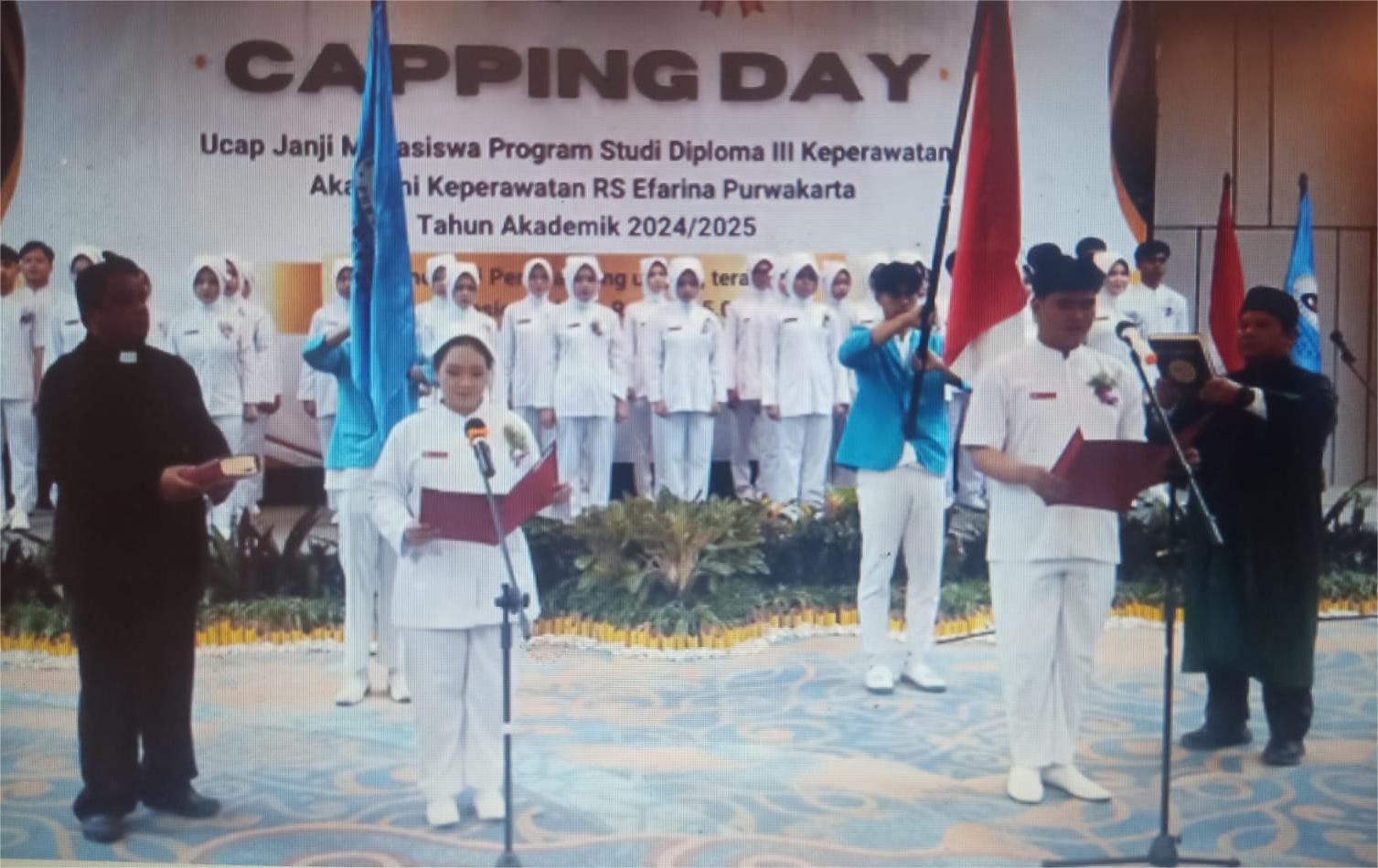 Sehubungan itu, ada 36 mahasiswa Jurusan Keperawatan, Akademi Keperawatan Efarina, Purwakarta, Jawa Barat, tahun akademi 2024/2025, melaksanakan kegiatan Ucap Janji mahasiswa Keperawatan dan Pemasangan Uniform di Hotel Harpper, Purwakarta, Selasa (24/6/2025).