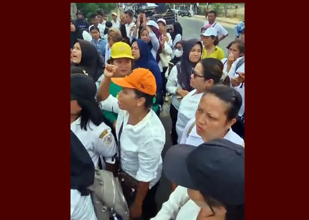 Sebagian di antara mereka bahkan membawa anak kecil saat aksi berlangsung, menandakan beratnya tekanan ekonomi pasca pemberhentian.