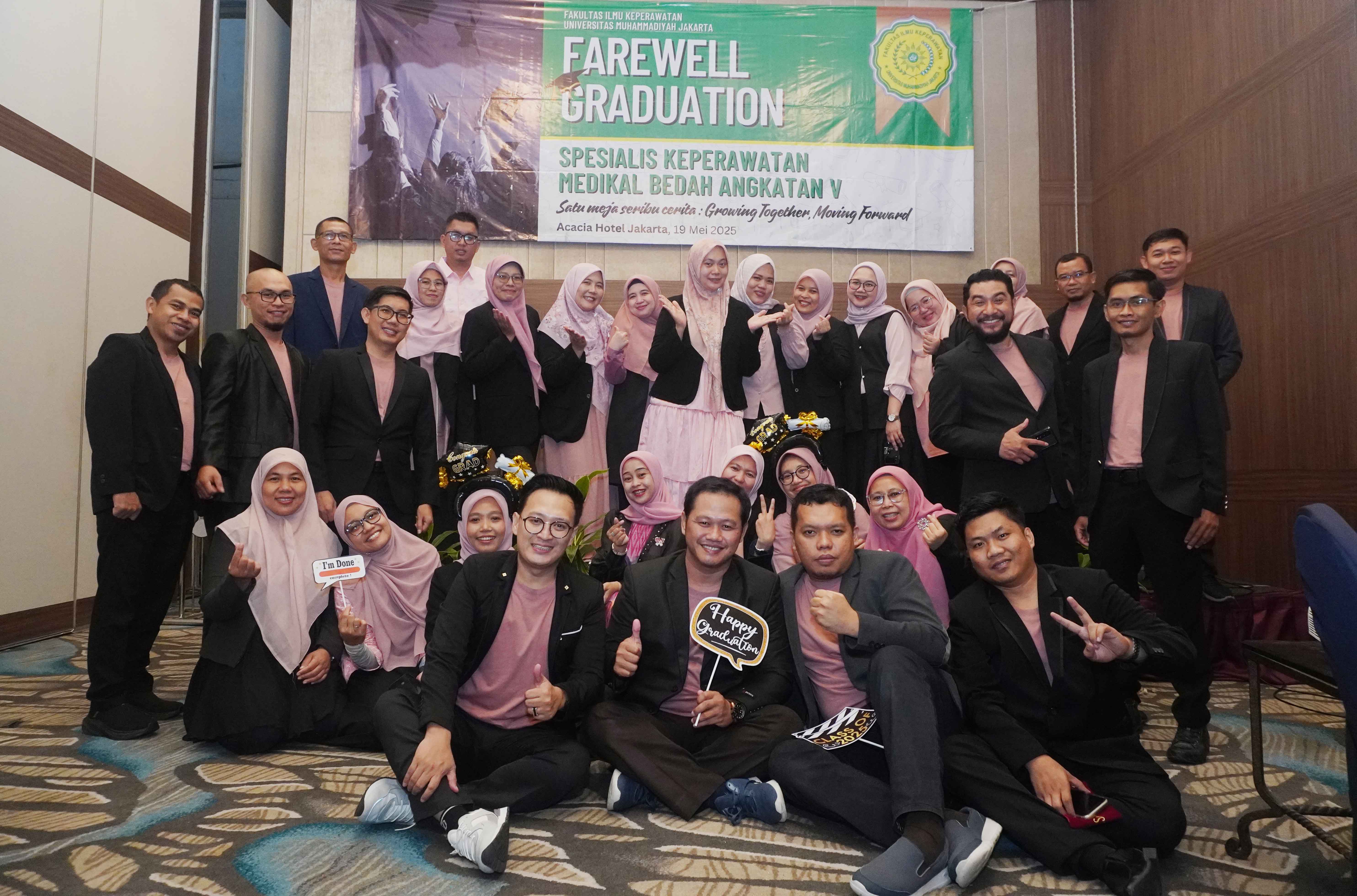 Sehubungan itu, Lulusan Spesialis Keperawatan Medikal Bedah Angkatan V Fakultas Ilmu Keperawatan (FIK) Universitas Muhammadiyah Jakarta (UMJ) menggelar Perpisahan Wisuda atau Farewell Graduation, mengangkat tema Satu Meja Seribu Cerita : Growing Together, Moving Forwad.