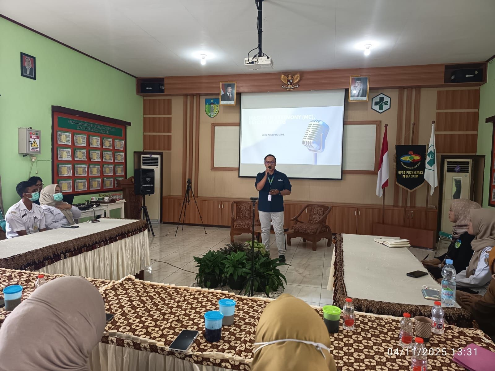 Sehubungan itu, UPTD Puskesmas Ngasem Kabupaten Kediri menggelar pelatihan MC, Public Speaking, dan Broadcasting bertajuk “Bangun Percaya Diri, Tampil Profesional, dan Sebarkan Semangat Sehat Lewat Suara – Speak With Heart, Serve With Voice” pada Selasa (4/11/2025) di Ruang Pertemuan Rapat Puskesmas Ngasem.