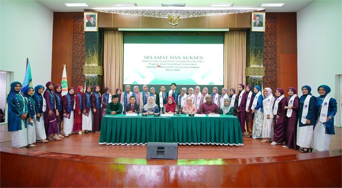 Untuk itulah sebanyak 32 orang mahasiswa Program Pendidikan Profesi Ners Fakultas Keperawatan Universitas Andalas resmi dikukuhkan melalui prosesi yudisium dan pengambilan sumpah ners yang digelar di Convention Hall Universitas Andalas, Kamis (12/6/2025).